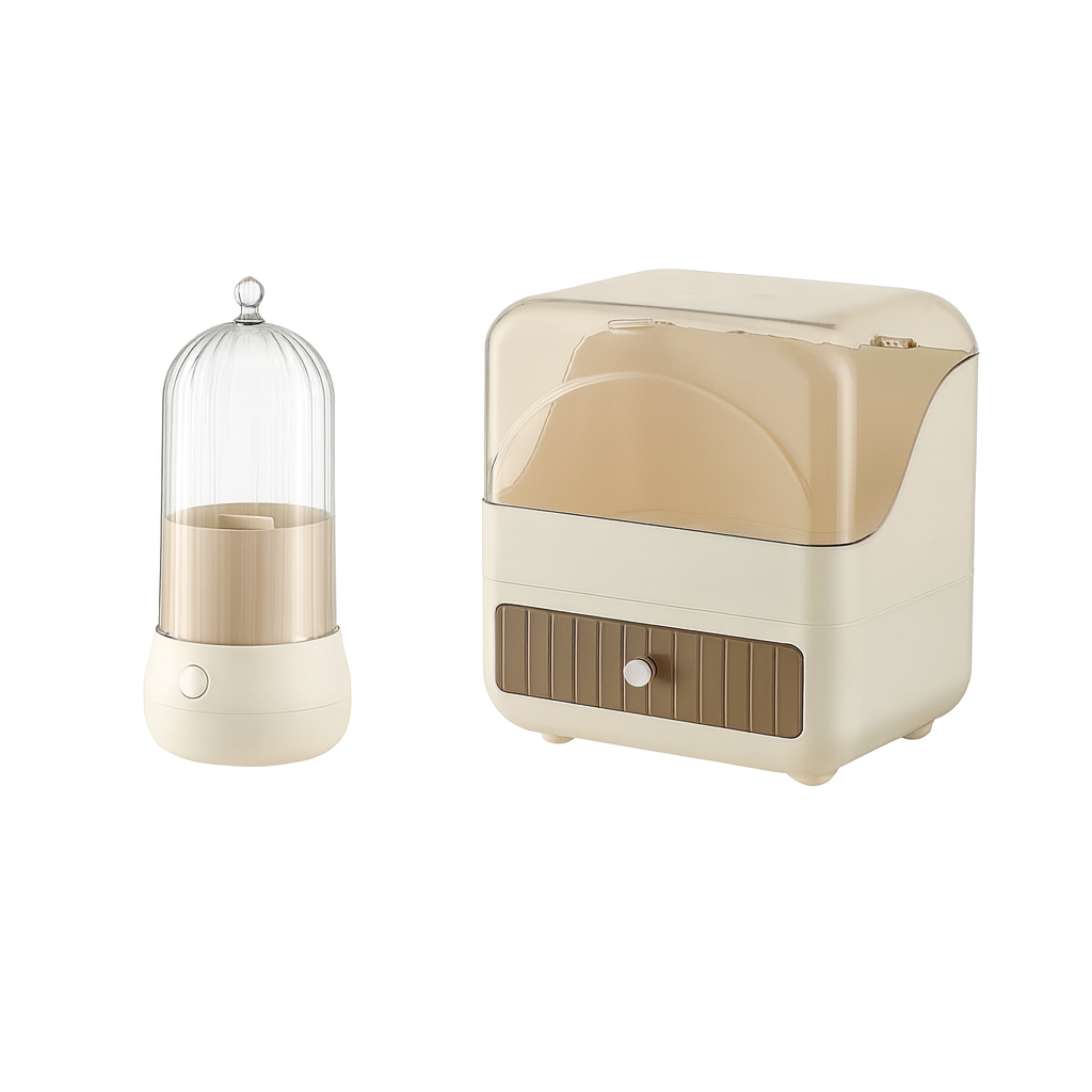 Caja de maquillaje práctica y funcional, ideal para mantener tus cosméticos ordenados y siempre listos para usar. Su tamaño es perfecto para tocadores, baños o áreas de trabajo, ayudando a guardar maquillaje sin desorden.