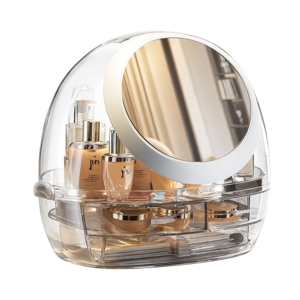 Caja de maquillaje práctica y espaciosa, ideal para organizar tus cosméticos de forma segura y ordenada. Su diseño sin luz la hace liviana y fácil de transportar, perfecto para uso diario en casa o para llevar a donde necesites.