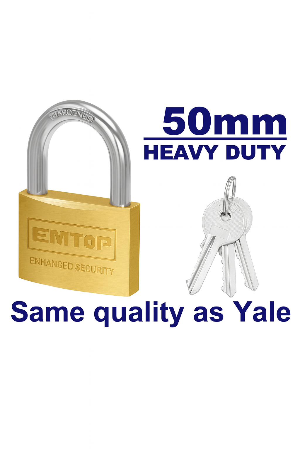 Candado de latón 50 mm de alta seguridad con cilindro y llaves de latón (3 piezas)