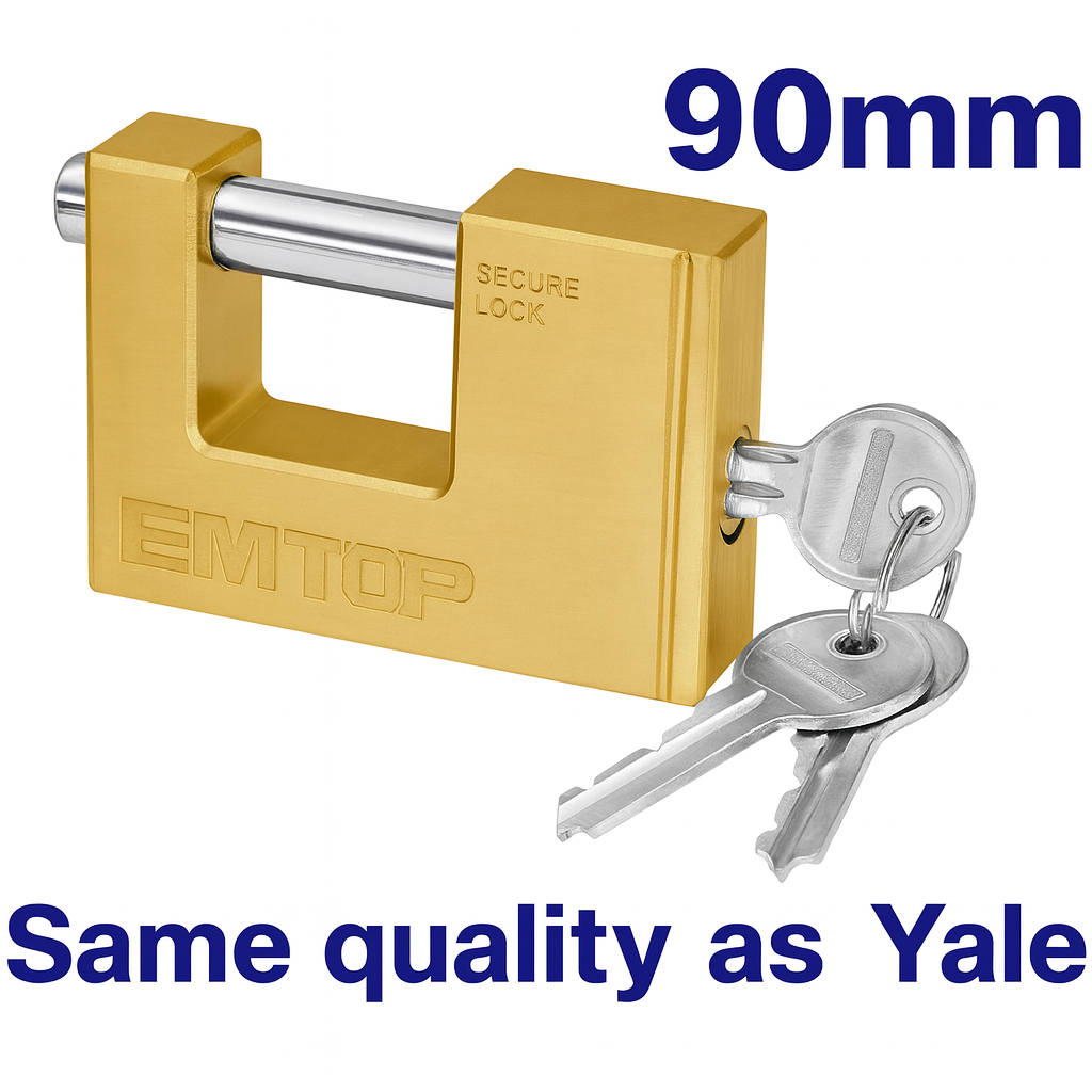 Candado macizo de latón 90 mm de alta seguridad con cilindro y llaves de latón (3 piezas)