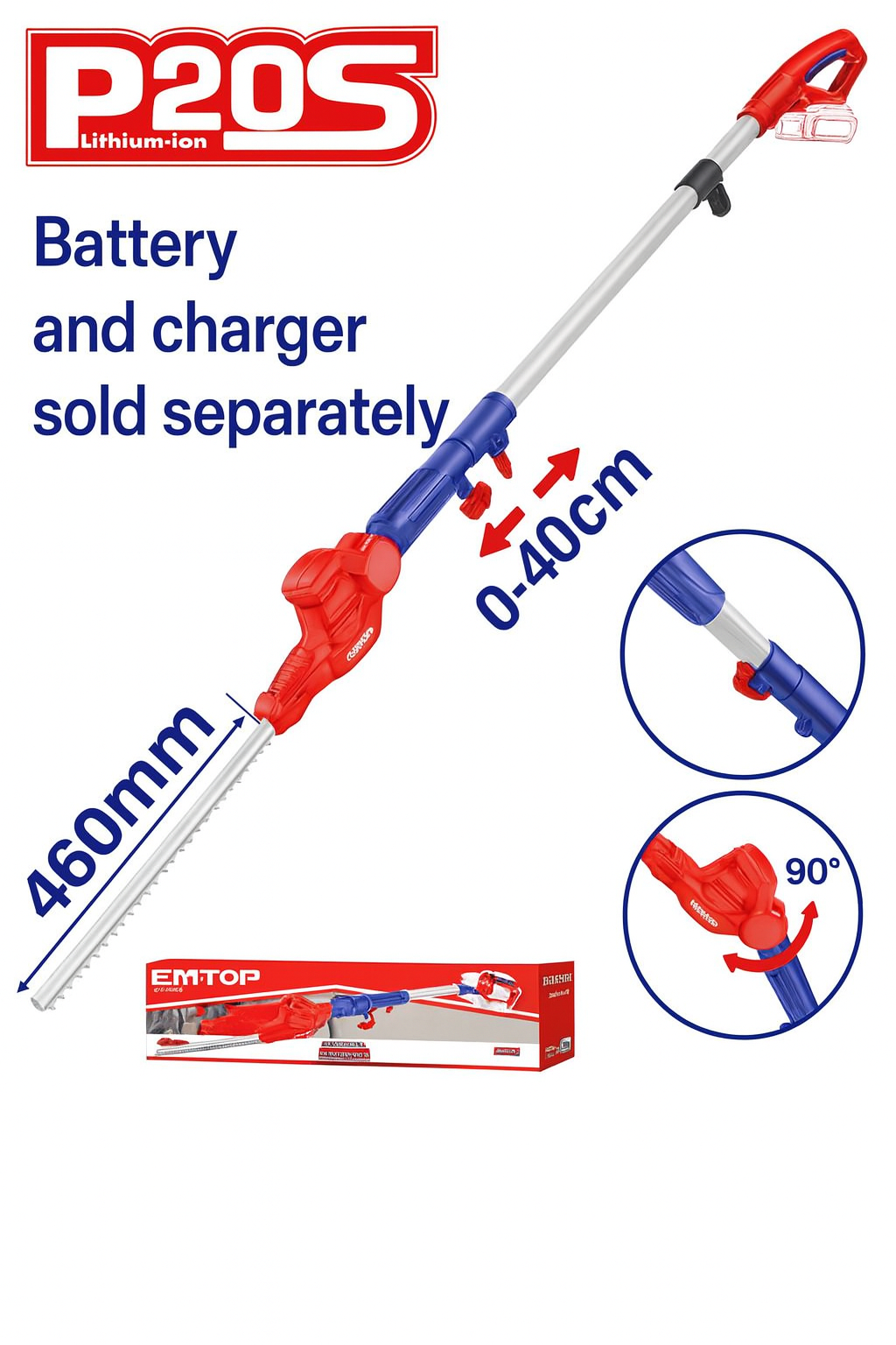 Cortasetos Telescópico Inalámbrico 20V – (2,4 m, 460 mm, 2800 spm, Cuchilla Láser)