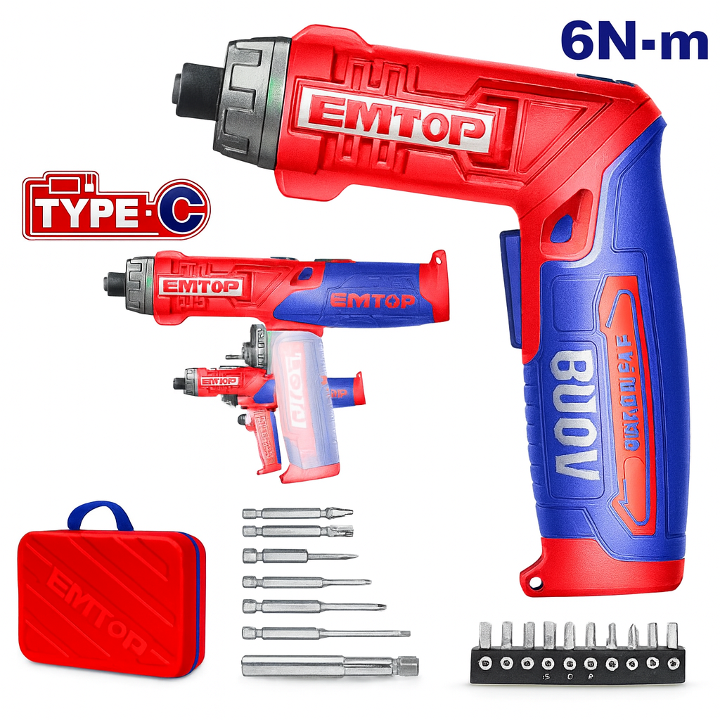 Máxima comodidad, potencia y precisión con el destornillador inalámbrico EMTOP de 8V.