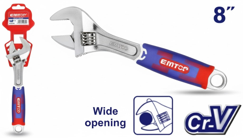Llave ajustable tipo cangrejo de 200 mm (8") Cr-V con mango ergonómico bicolor