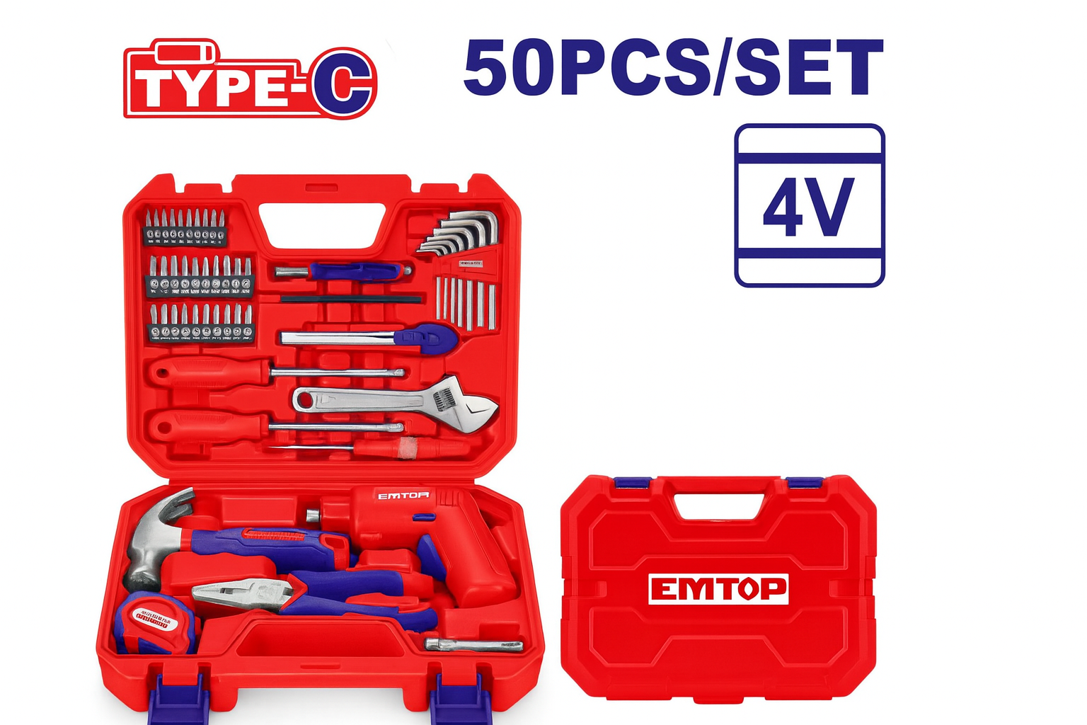 • Juego de herramientas de 50 piezas con destornillador inalámbrico de 4V y accesorios domésticos