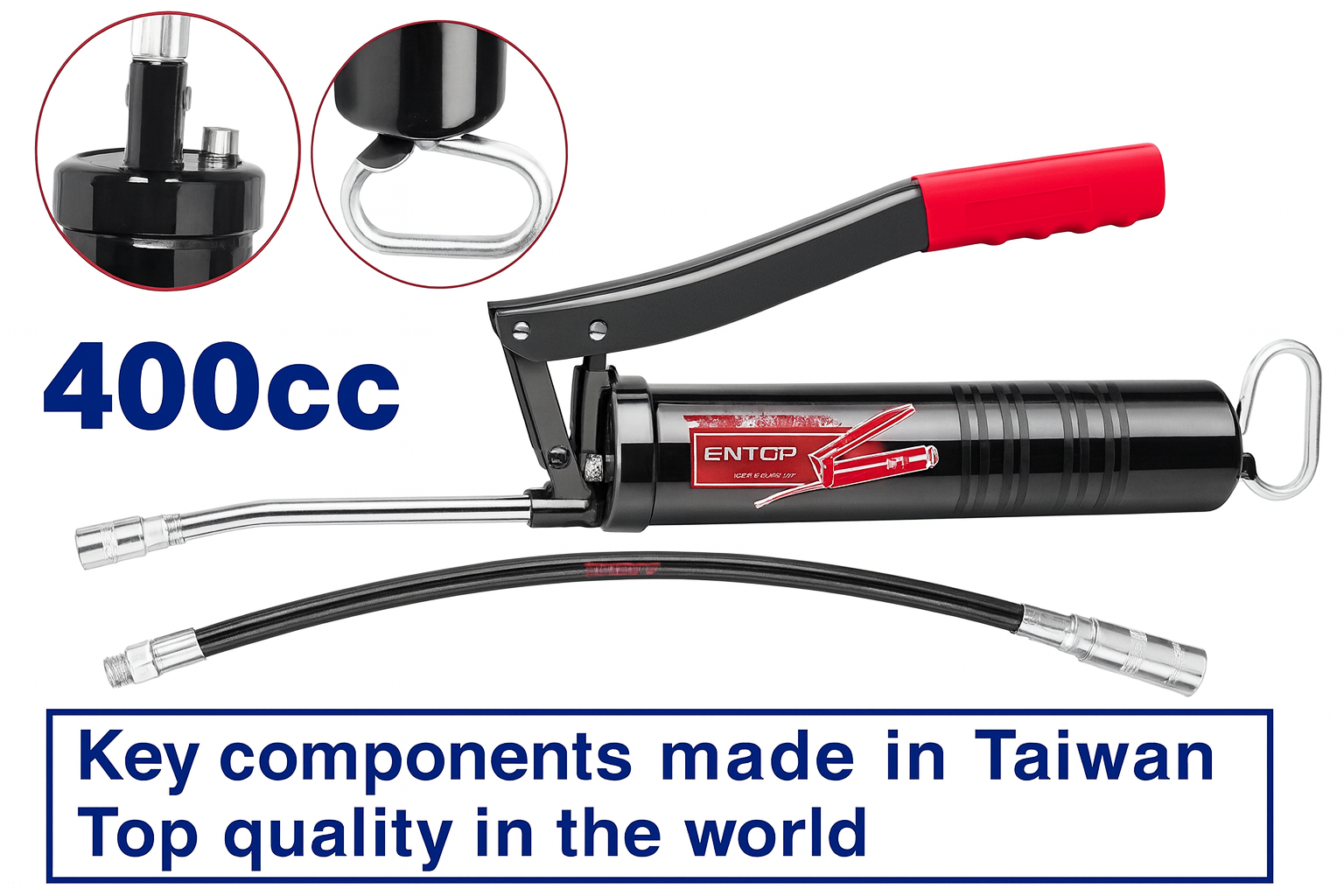 pistola engrasadora trabajo pesado de alta calidad fabricado en Taiwán, ideal para lubricación profesional en maquinaria, vehículos y equipos industriales. Construida con tubo de acero de 1,2 mm y cuerpo de aluminio fundido, garantiza una operación duradera, segura y eficiente incluso bajo alta presión.
