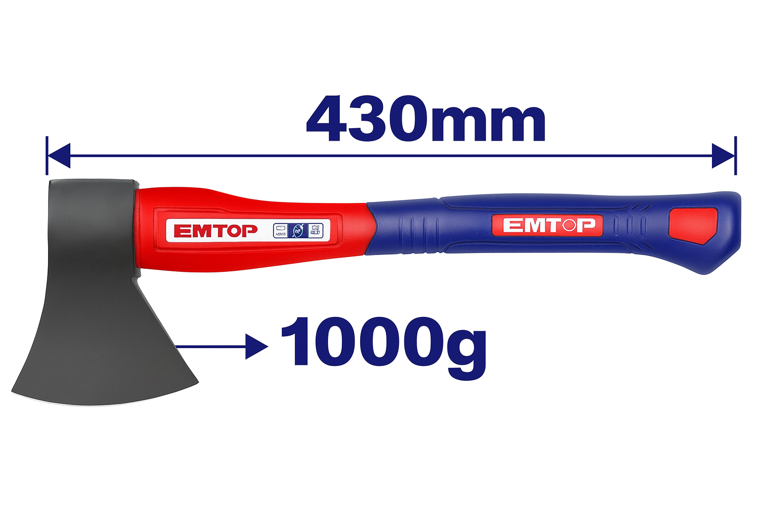 • Hacha de 1000 g con cabeza forjada doble y mango de fibra de vidrio en acero al carbono 45#