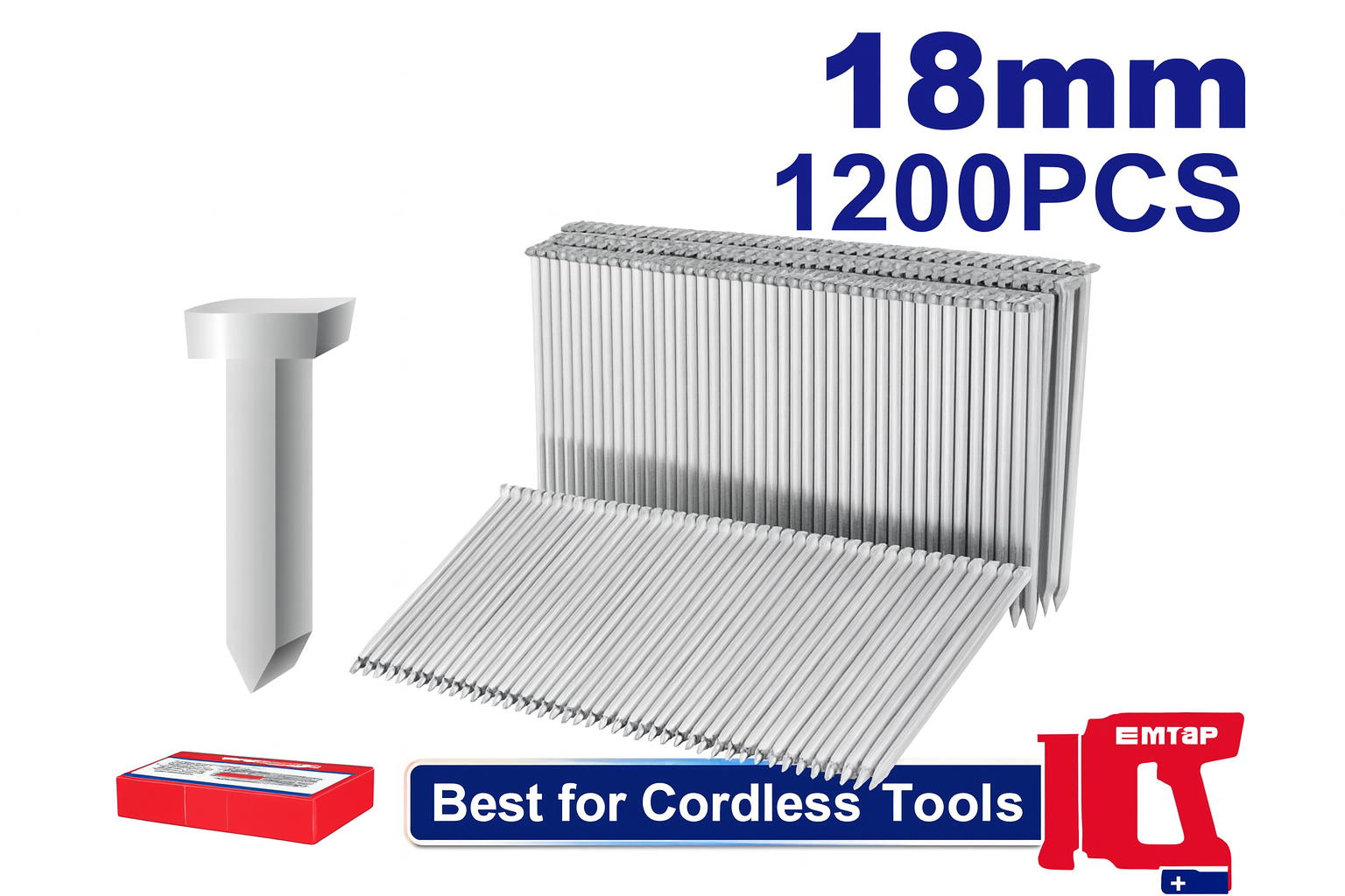 Los clavos para concreto EMTOP ENAL12018 están diseñados para ofrecer máxima fuerza de sujeción y durabilidad, ideales para trabajos de fijación en superficies duras como concreto, mampostería o ladrillo. Fabricados en acero de alta resistencia, garantizan penetración eficiente y firmeza superior, compatibles con herramientas de fijación EMTOP.