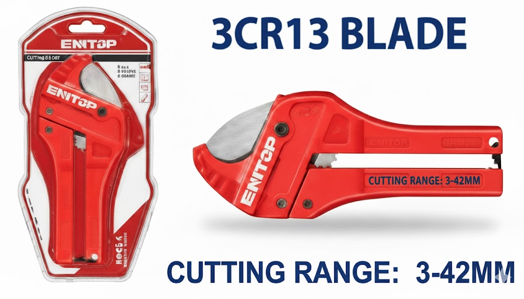 Cortador de tubo profesional diseñado para cortar tuberías de PVC, PPR, PE y materiales plásticos similares con precisión y sin esfuerzo. Fabricado en acero inoxidable 3Cr13, ofrece gran durabilidad y un filo resistente al desgaste. Su mecanismo de apertura automatica facilita el uso con una sola mano, aumentando la eficiencia y comodidad.