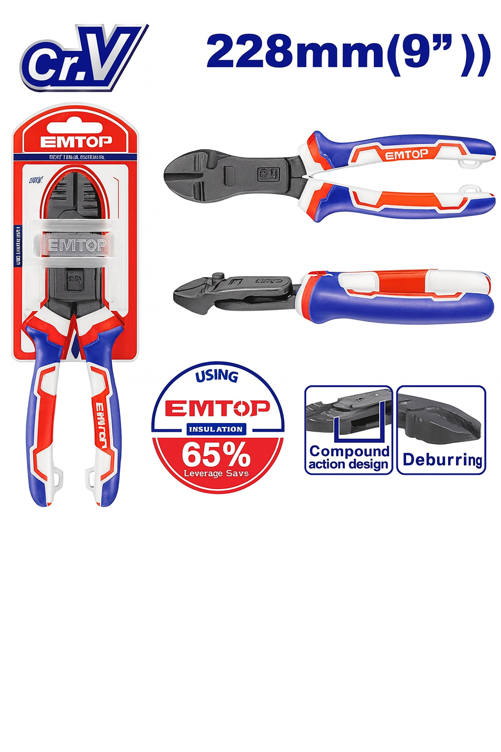 Alicate de corte diagonal de acción compuesta de 9" (228 mm) Cr-V con mango tricolor TPR