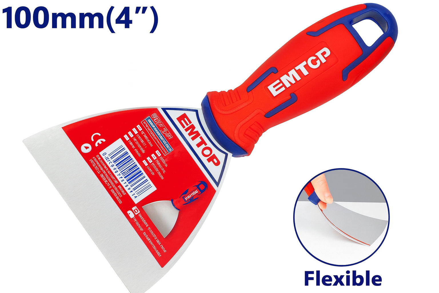 Espátula para masilla de 100 mm (4") en acero inoxidable con mango bicolor