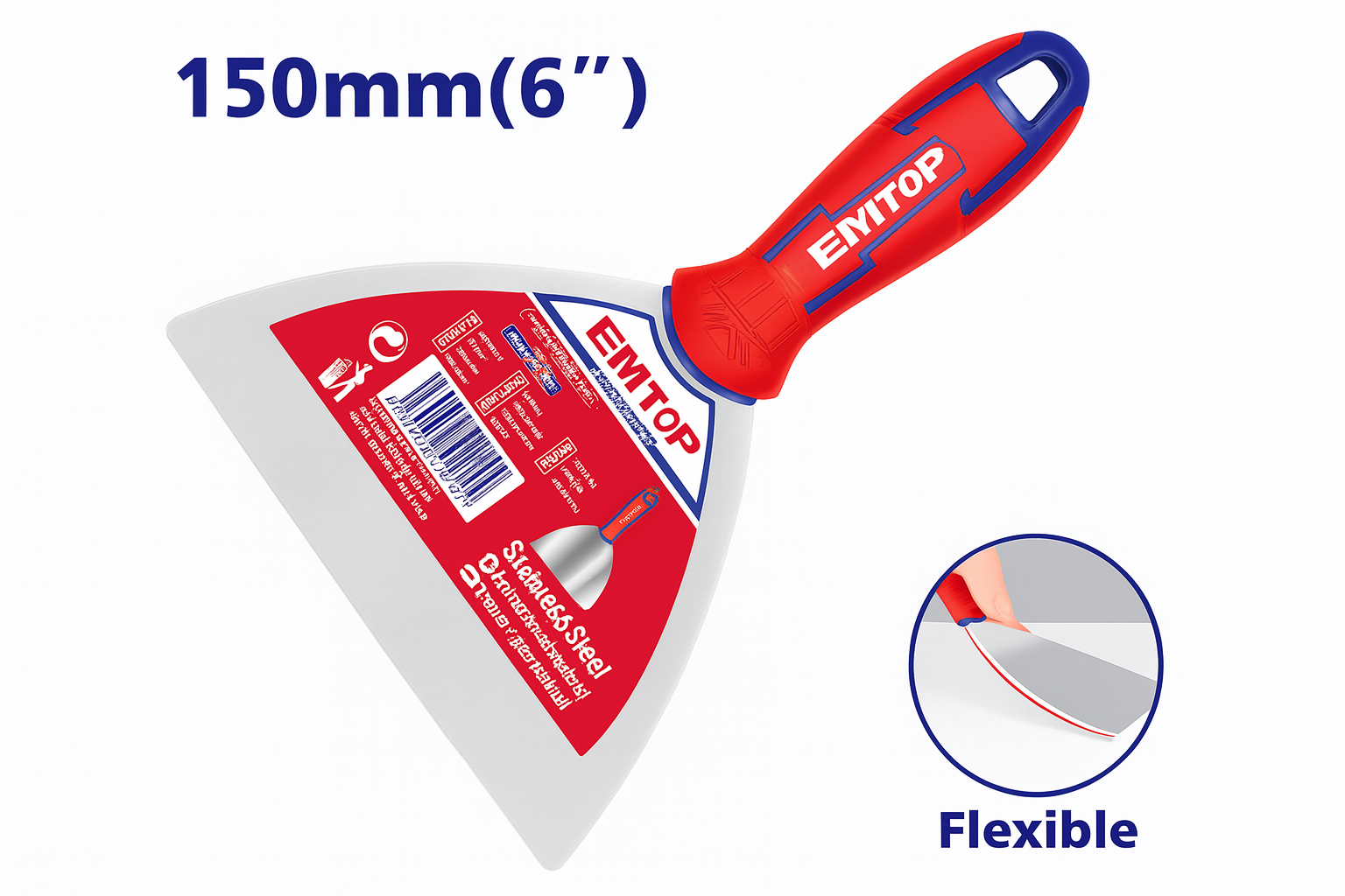 Espátula para masilla de 150 mm (6") en acero inoxidable con mango bicolor