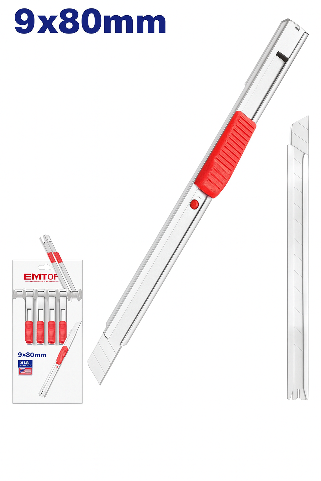 Cúter retráctil profesional de 9mm, ideal para Corte preciso de papel, cartón, plástico y materiales de embalaje.. Su cuerpo metálico resistente proporciona estabilidad y durabilidad, mientras que el botón plano deslizante permite ajustar la hoja de forma segura y cómoda. Incluye una hoja SK5 de alta calidad, afilados y duraderos, lista para usar.