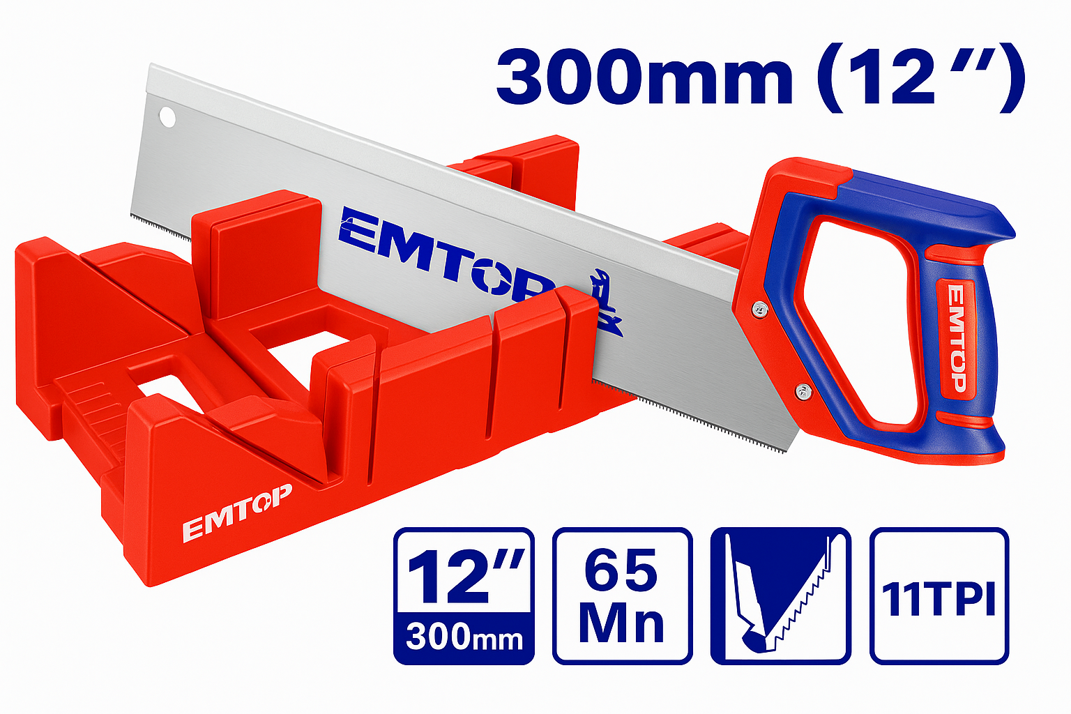 Juego de caja de ingletes plástico con sierra de costilla de 12" (300 mm) y mango ergonómico