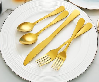 Dale un toque de elegancia a tu mesa con el juego de cubiertos KA-DH213, fabricado en Acero inoxidable de buena calidad con acabado en titanio dorado.. Diseñado para combinar estilo, resistencia y sofisticación en cada comida.