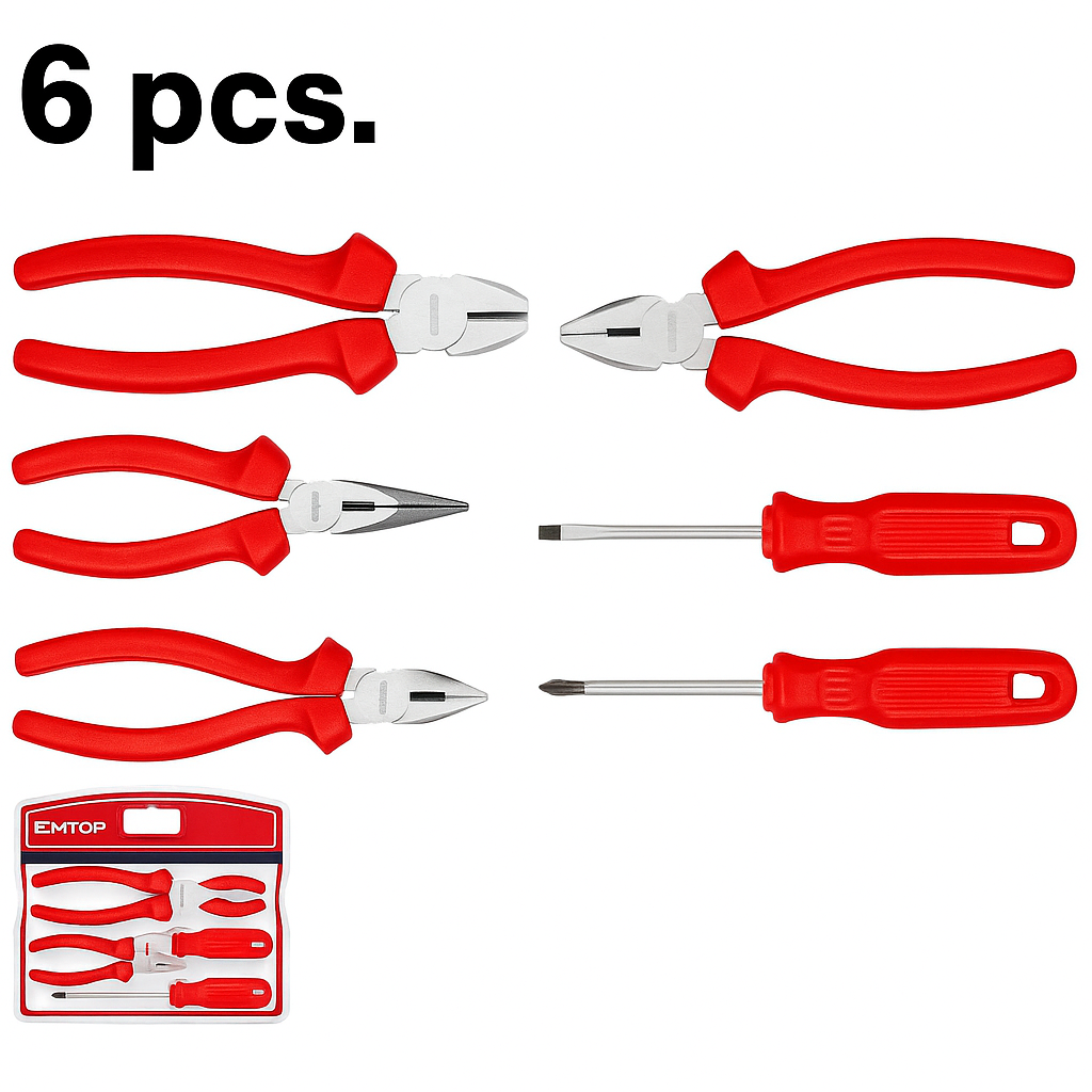 Juego basico de 5 herramientas esenciales, ideal para reparaciones domésticas, eléctricas o de mantenimiento general. Incluye pinzas combinadas, de punta larga, de corte diagonal y dos desarmadores de uso común. Fabricadas con materiales de alta calidad y mangos ergonómicos monocolor, brinda comodidad, durabilidad y un excelente agarre.
