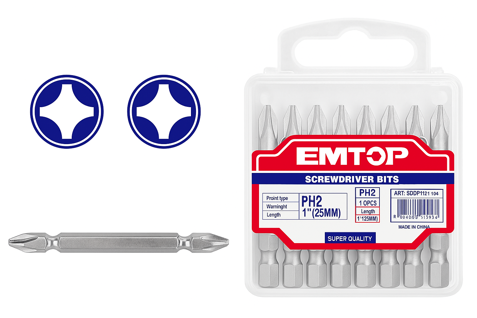 el juego de puntas para destornillador EMTOP ESBTPH2233 ofrece Resistencia, precisión y larga duración., ideal para trabajos de ensamblaje, carpintería, mantenimiento y construcción. Fabricadas en acero industrial S2, garantizan máxima dureza y transmisión de par, mientras que su acabado niquelado magnético mejora el agarre del tornillo y previene la corrosión.