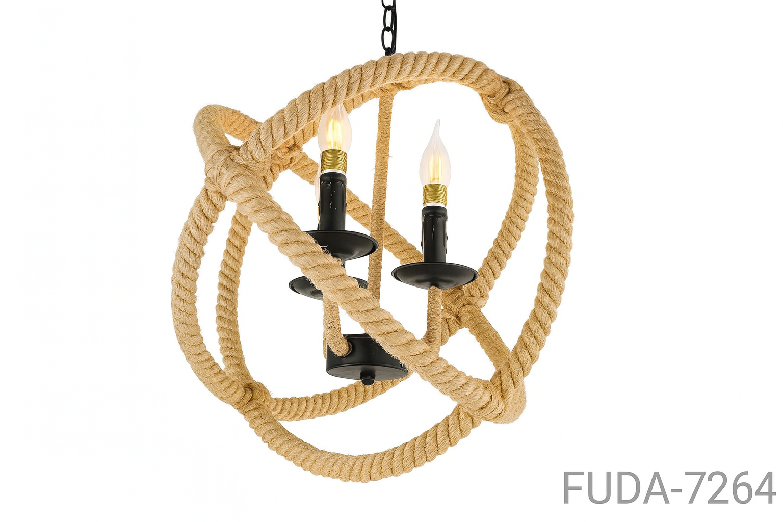 Lampara colgante LGYC31001043 / XZHY012310-043 combina materiales naturales y diseño industrial en una pieza elegante y funcional. Su estructura de hierro y cuerda de cáñamo aporta un toque artesanal y cálido, ideal para espacios decorativos con estilo rústico, vintage o boho industrial.
