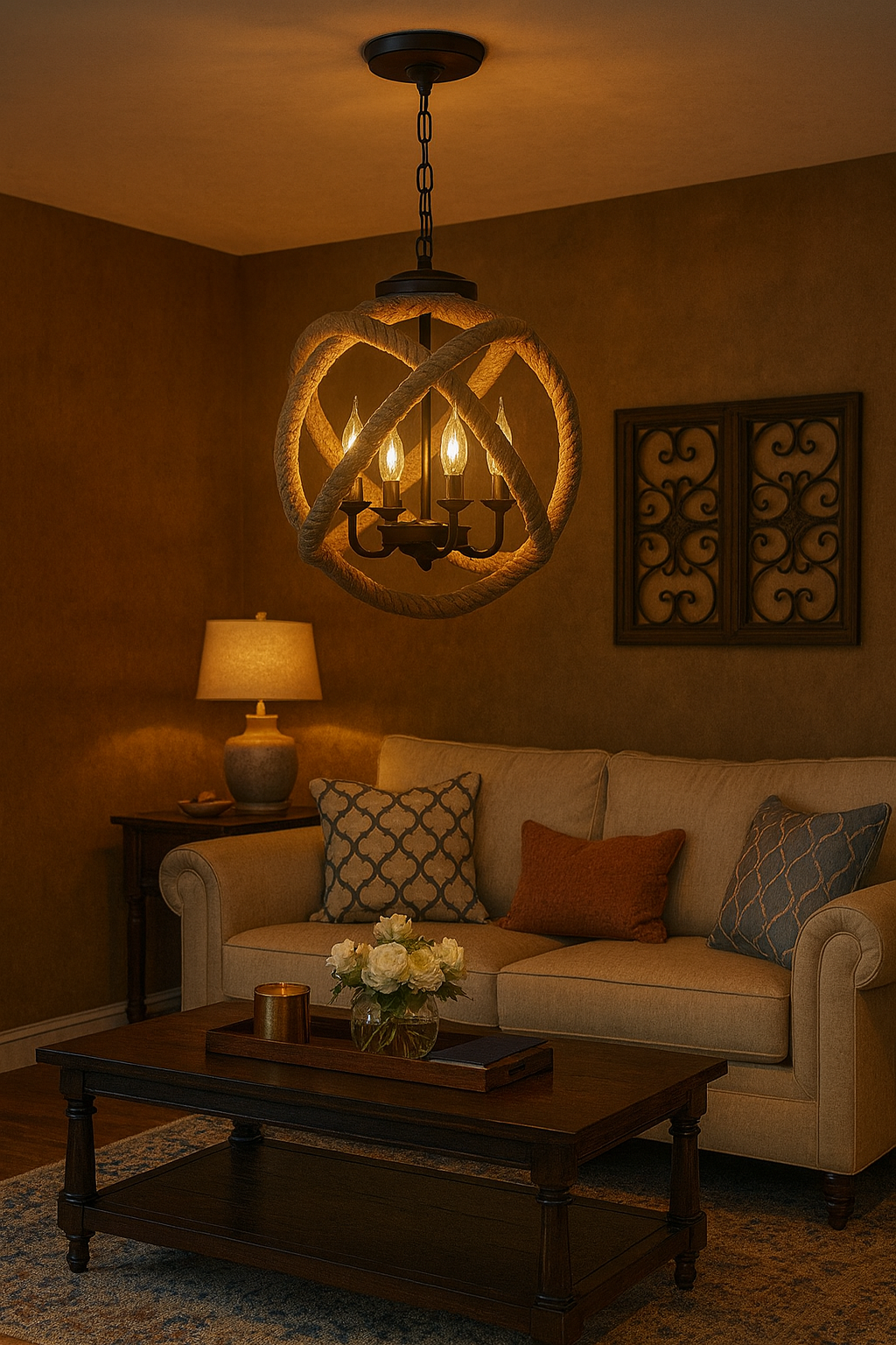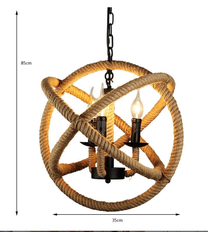 Ideal para comedores, barras, salas, restaurantes o espacios decorativos tipo loft. Su combinación de hierro negro y cuerda de cáñamo crea una iluminación cálida con un estilo natural e industrial perfecto para interiores modernos y acogedores.