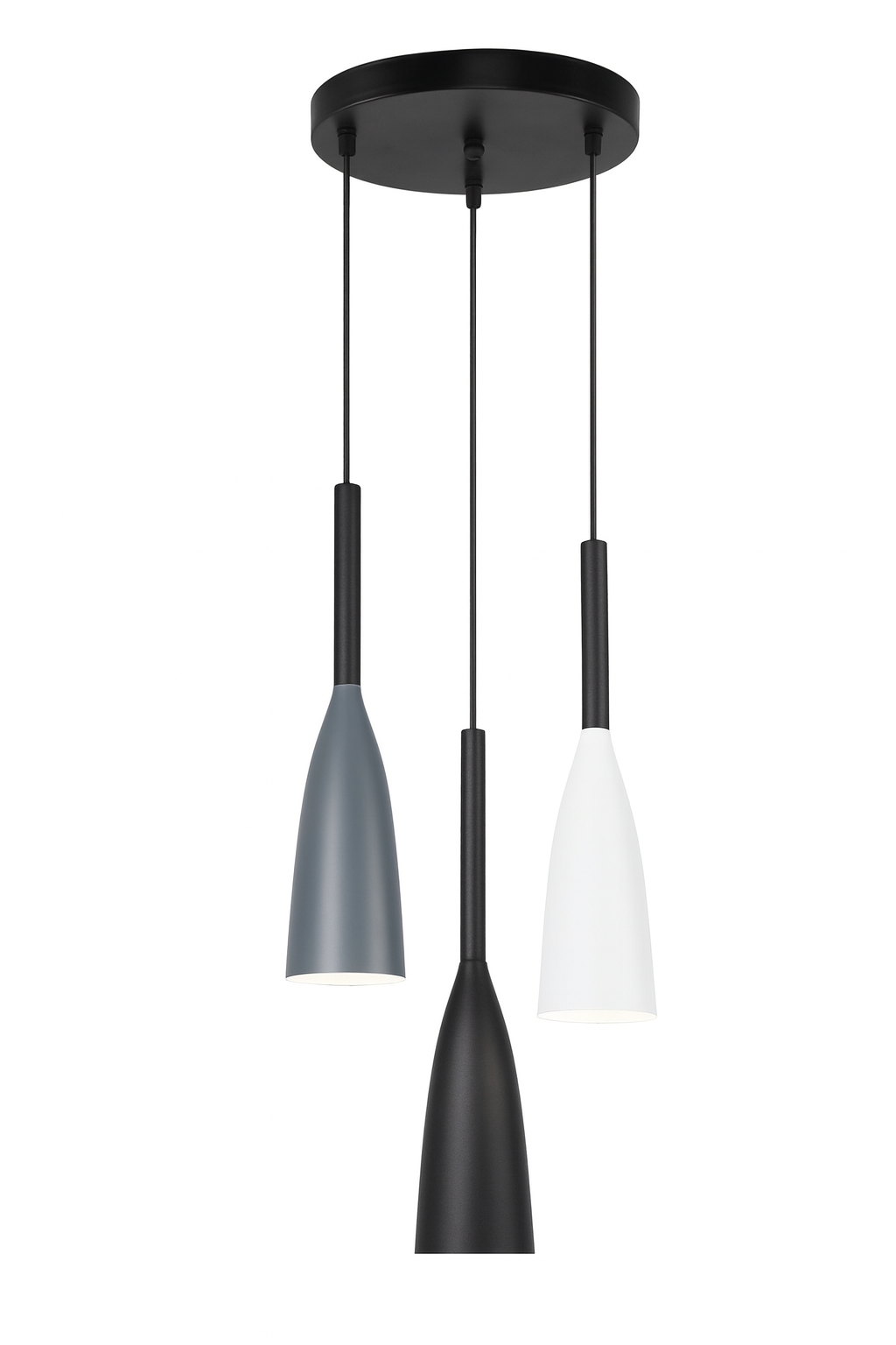 Con una base redonda de Ø230mm en color negro y cables colgantes del mismo tono, esta lámpara aporta contraste y sofisticación a cualquier espacio.