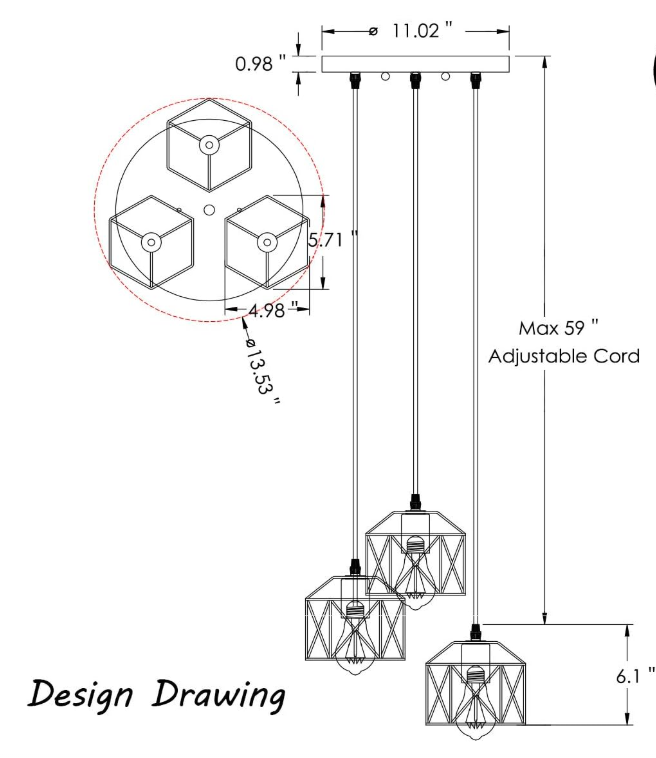 • 💡 Tipo: Lámpara colgante de 3 luces