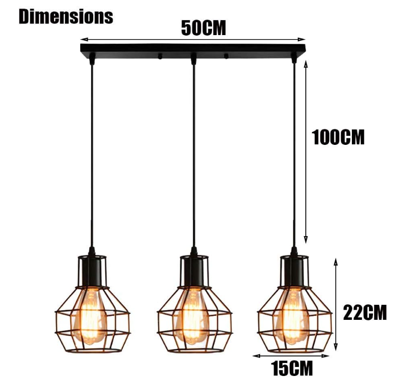 • 💡 Tipo: Lámpara colgante de 3 luces