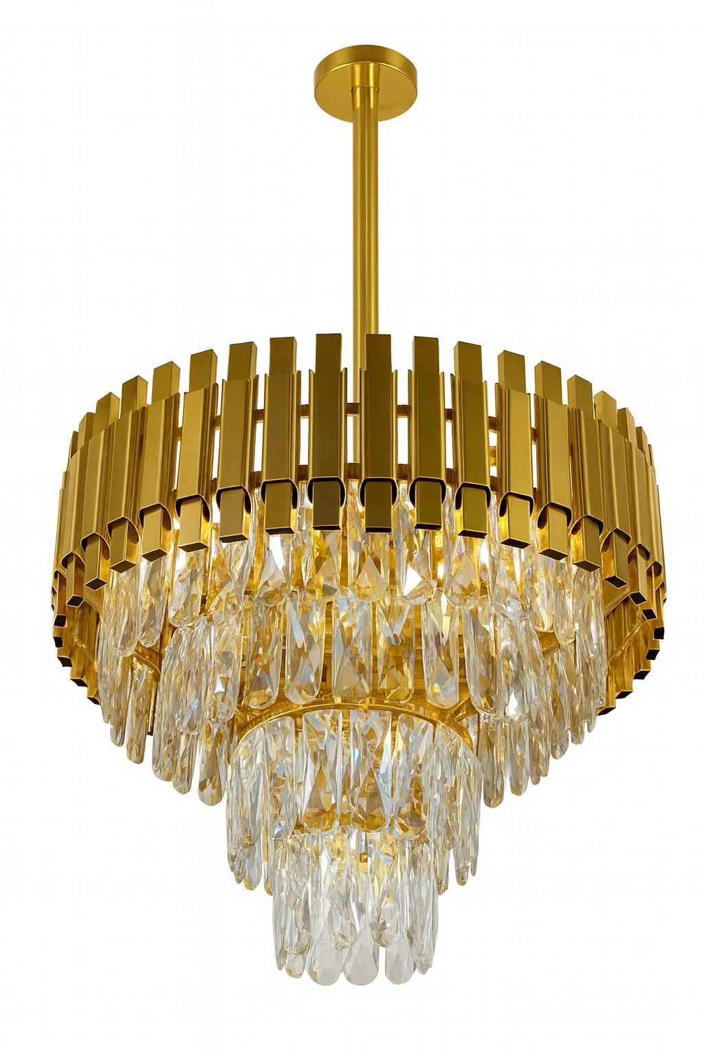 la lámpara colgante de cristal LG-MY40701074 combinar elegancia, diseño contemporáneo y materiales de alta gama., convirtiéndose en una pieza ideal para realzar espacios con un toque de lujo moderno. Su estructura circular de 400 mm de diámetro, fabricado en Perfil de aluminio, cristal, hierro y acero inoxidable., se complementa con un acabado dorado oxidado que aporta sofisticación y brillo.