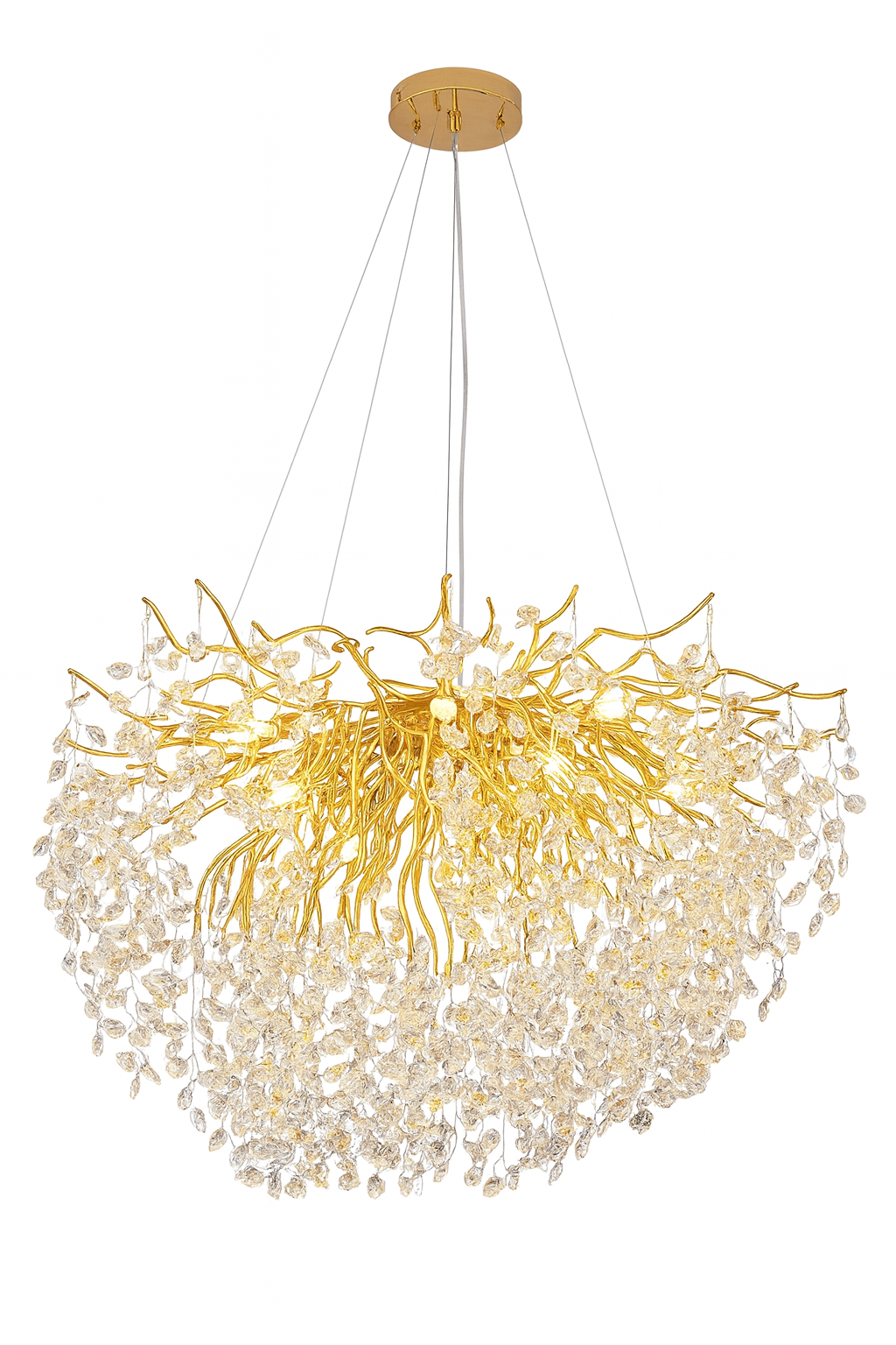 Equipada con 12 luces E14, ofrece una iluminación uniforme y equilibrada, perfecta para comedores, salas, hoteles o recepciones que buscan estilo y luminosidad premium.