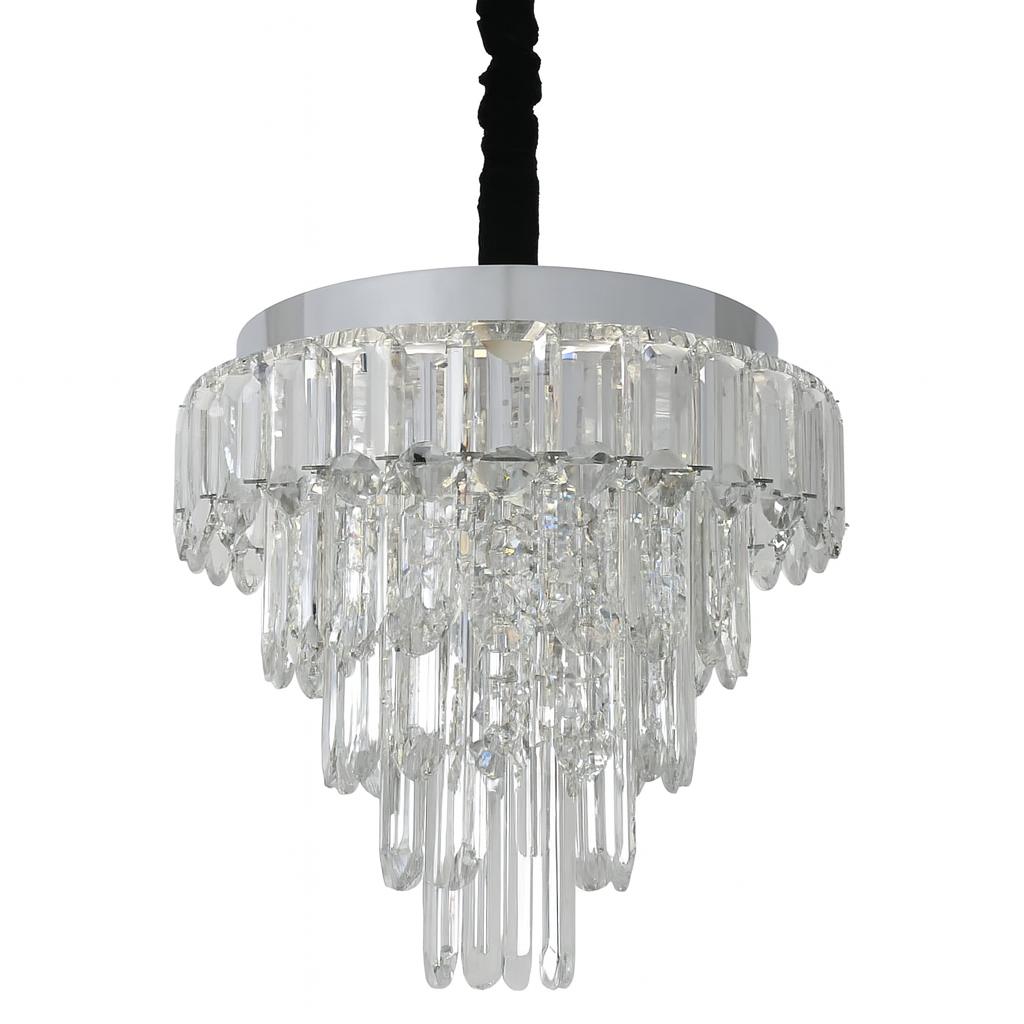 Agrega un toque de distinción a tus espacios con esta lámpara colgante de cristal LED, perfecto para quienes buscan elegancia y modernidad. Fabricada en acero inoxidable, combina materiales de alta calidad con una iluminación regulable controlado fácilmente mediante control remoto 2.4G.