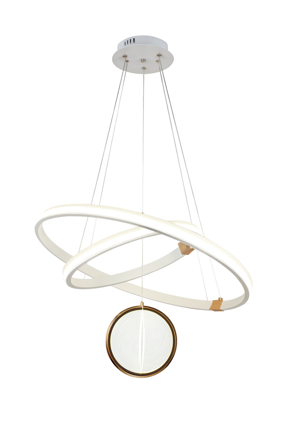la lámpara colgante LED moderna LG TEM40901001/T fusiona elegancia y tecnología con un diseño contemporáneo de aros concéntricos en blanco y dorado electrolítico, ideal para espacios modernos que buscan distinción y luminosidad uniforme. Su luz LED tricolor ajustable permite adaptar el ambiente a cada momento del día.