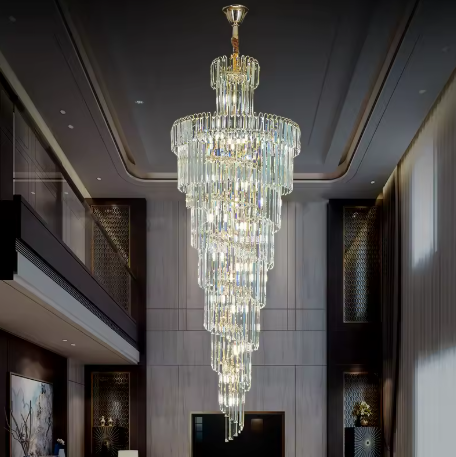 la lámpara de cristal de lujo LG-MY40801068 es una pieza deslumbrante que combina diseño majestuoso, materiales de alta gama y un acabado impecable. Su estructura de 800 × 2200 milímetros, elaborada en cristal y material electroplateado, presenta un acabado dorado brillante que aporta elegancia, lujo y sofisticación a cualquier ambiente.