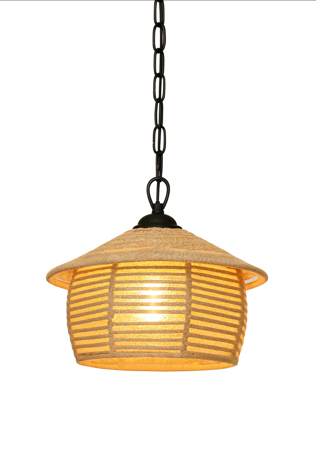 Lampara colgante LG-YC40701115 combina materiales naturales y diseño artesanal para crear una iluminación cálida y acogedora. Su estructura de hierro recubierta con cuerda de yute natural ofrece un estilo rustico y decorativo, ideal para espacios que buscan una estética natural e industrial.