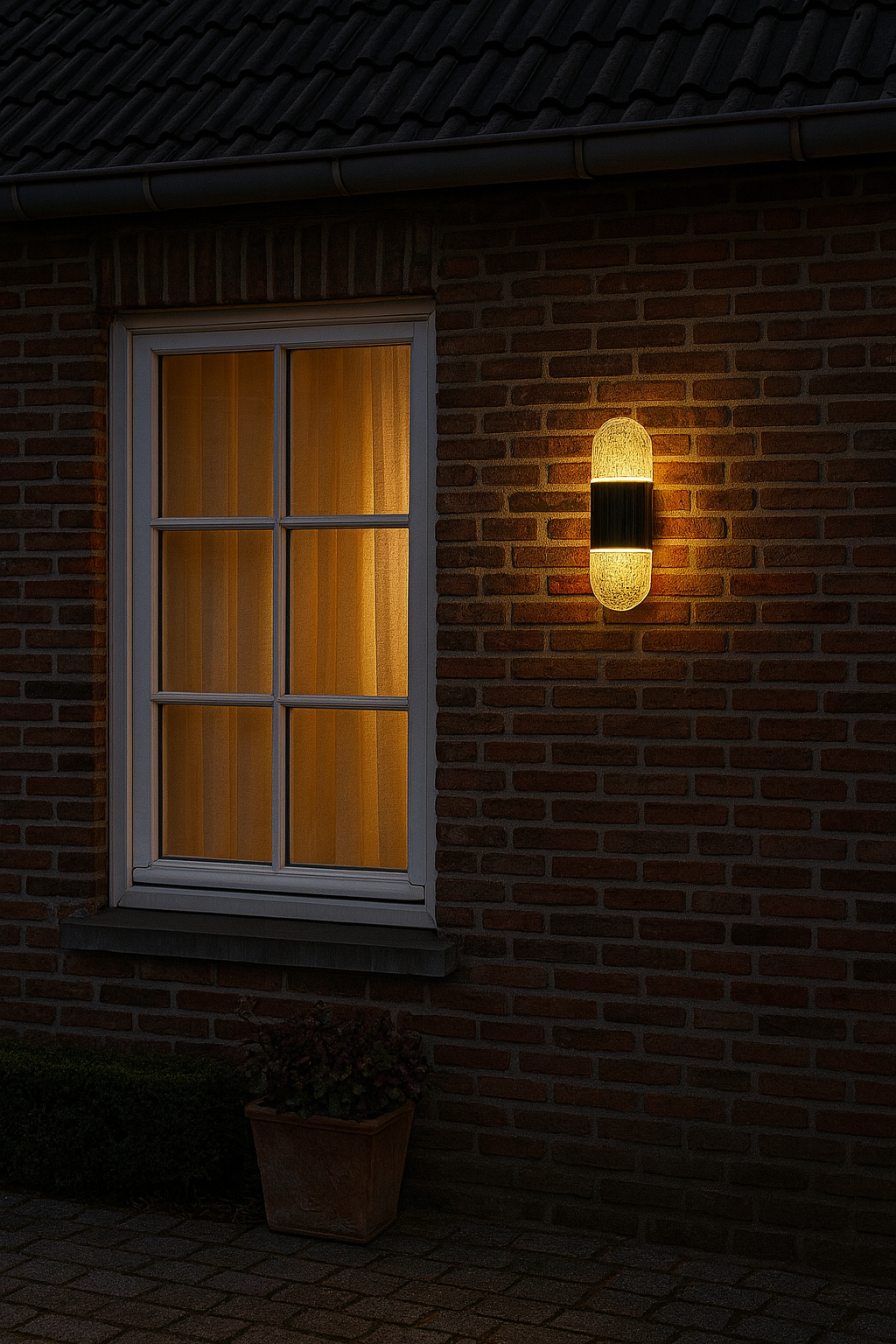 Perfecta para focos LED o incandescentes E27 en muros, fachadas o pasillos.