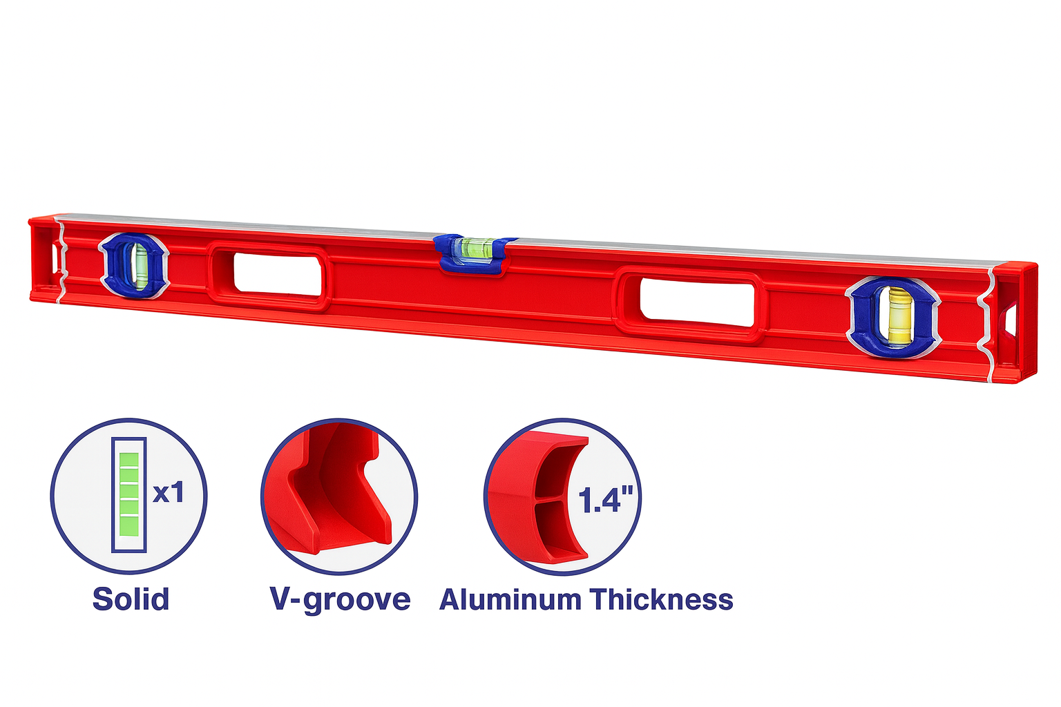 • Nivel de Burbuja de 80 cm con Ranura en V para Superficies Redondeadas