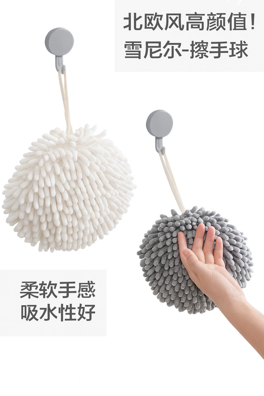 La bola PD-YDL384 está elaborada en chenilla de buena calidad, ideal para secar las manos de forma suave y rápida. Su diseño colgante permite mantenerla siempre a mano en baños y cocinas.