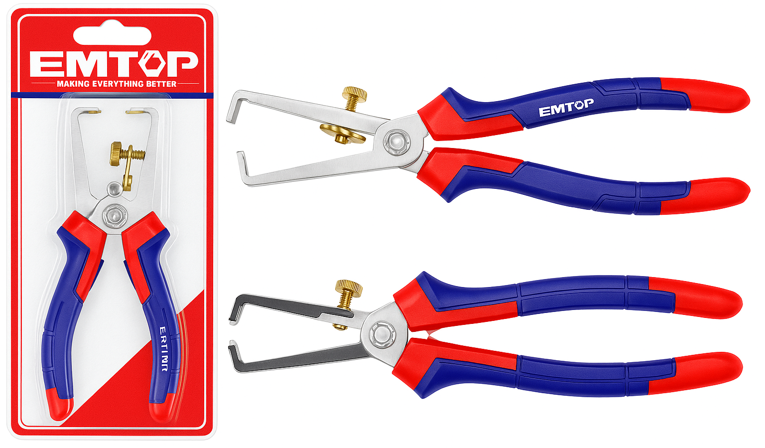 • Pelador de cable eléctrico de 6" (160 mm) con mango bicolor y acabado pulido antióxido