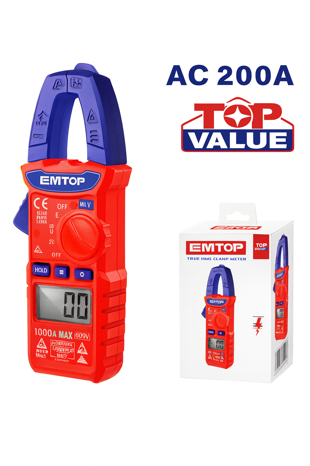 la pinza amperimétrica EMTOP EDMR22001 es una herramienta Compacto, preciso y fácil de usar., ideal para técnicos, electricistas y usuarios que requieren mediciones rápidas y seguras. estafa pantalla LCD de 2000 cuentas y función de retención de datos, permite leer valores con claridad incluso en condiciones de trabajo exigentes.