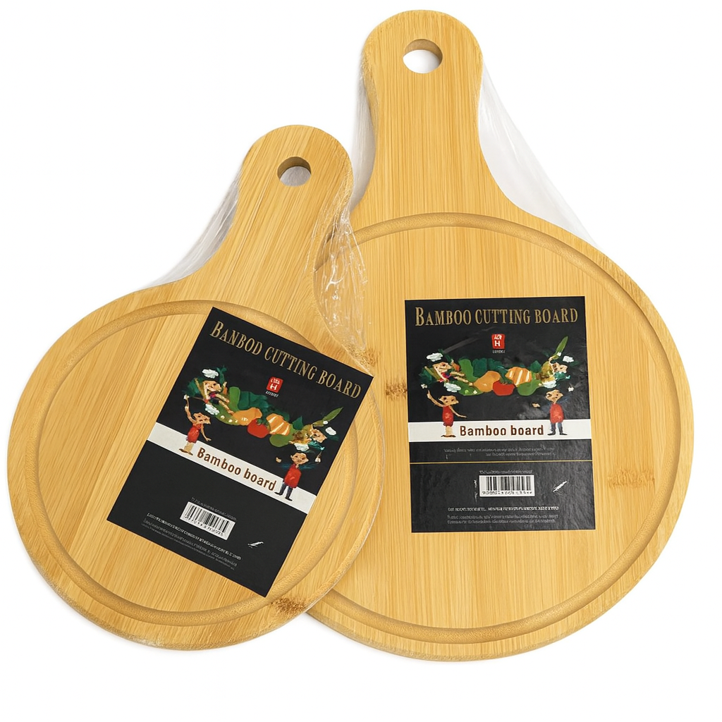 la KA-GS025 es una tabla redonda de bambú natural que combina belleza, funcionalidad y sostenibilidad. Su diseño versátil permite usarla tanto para picar alimentos como para servir pizzas, quesos o entradas, aportando un toque cálido y cómodo a la cocina o mesa.