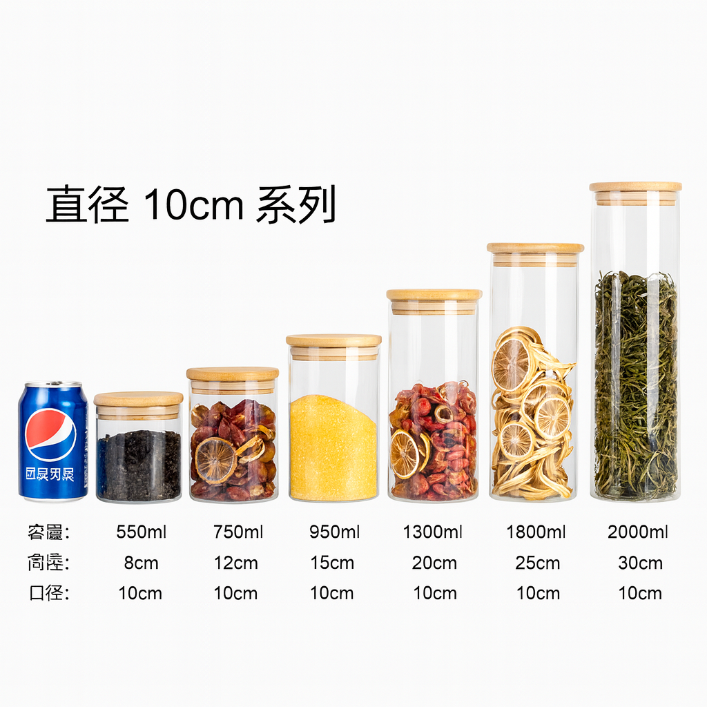 Organiza y conserva tus alimentos con elegancia gracias al Tarro de vidrio cilíndrico con tapa de bambú GC-XT018.