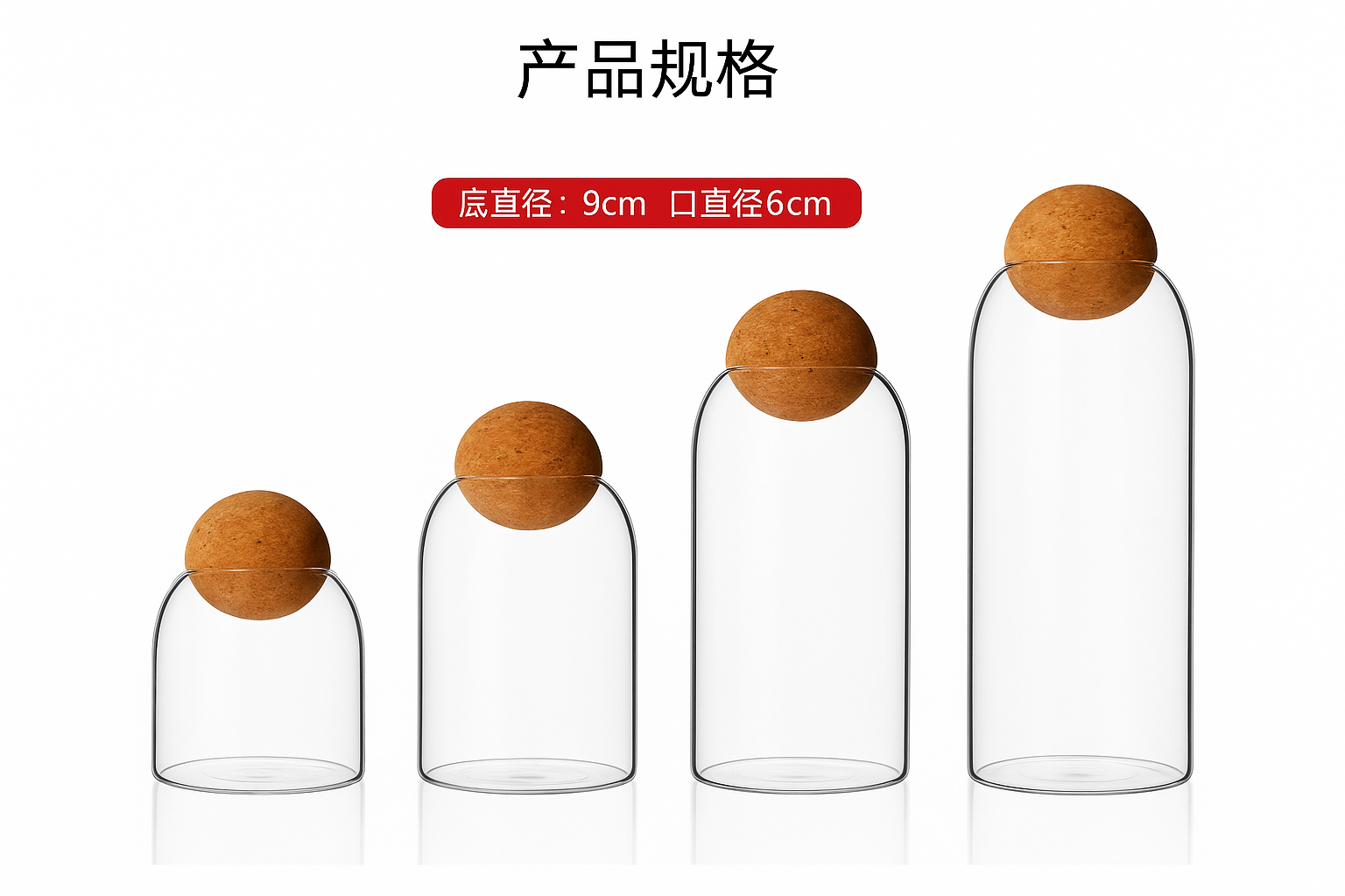 Almacena y decora con elegancia gracias al Tarro de vidrio cilíndrico con tapón de corcho esférico GC-XT024.