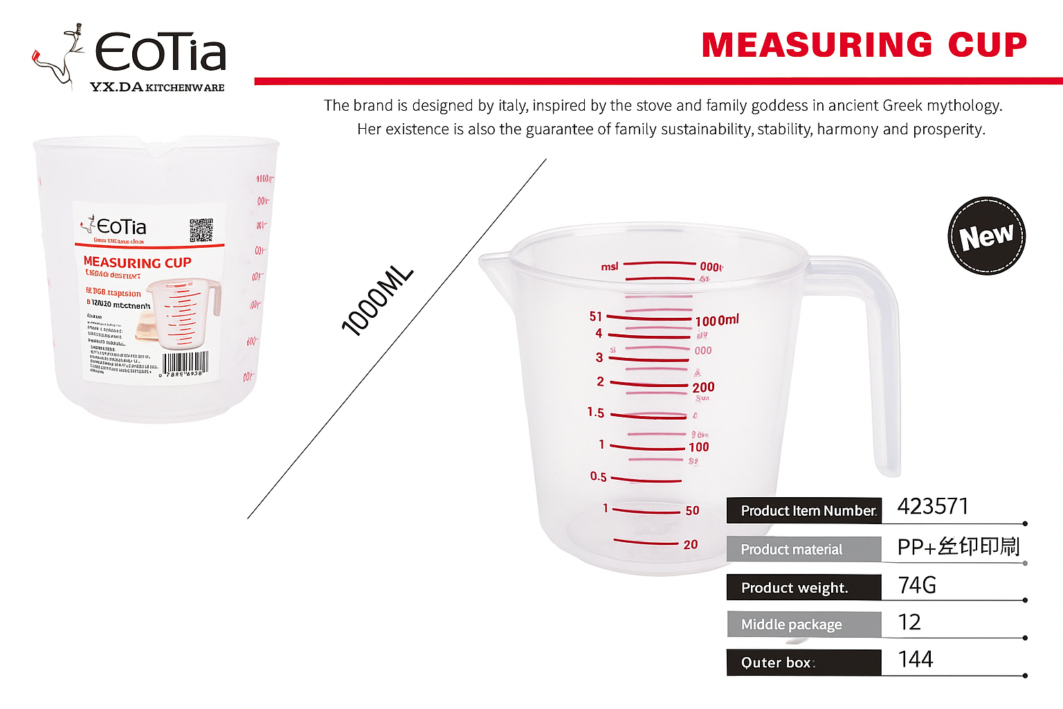 Logra medidas exactas en todas tus preparaciones con la Taza Medidora de Plástico 423571, perfecto para ingredientes medir líquidos o secos con precisión y facilidad. Ideal para repostería, cocina diaria o uso profesional, su diseño ergonómico te permite cocinar con confianza y orden.