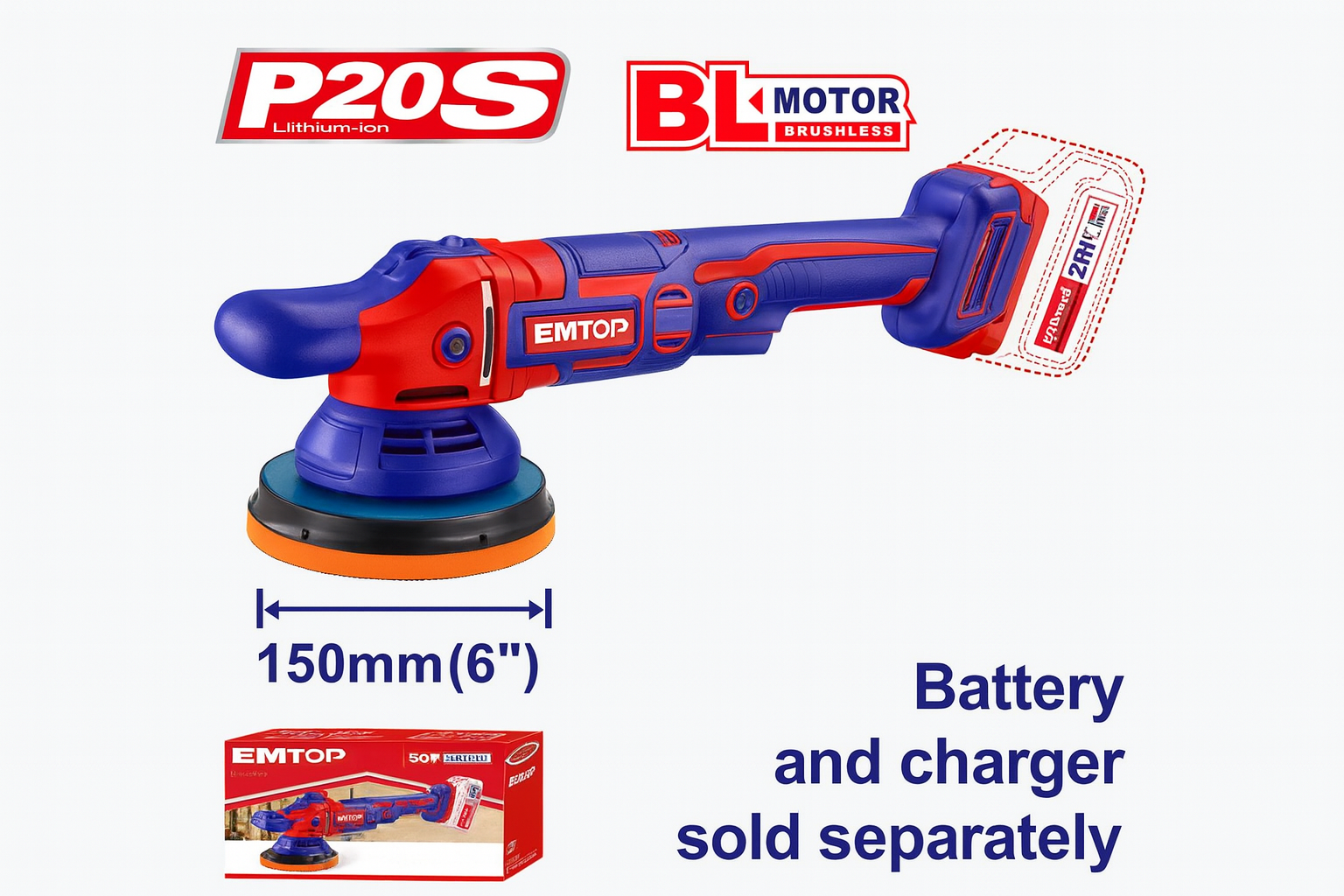 la pulidora inalámbrica EMTOP ELAP2015 combinar Potencia, precisión y libertad de movimiento. gracias a su motor sin escobillas (brushless) y su diseño ergonómico. Ideal para detallados automotrices, restauración de superficies y trabajos de pulido profesional, ofrece un rango de velocidad ajustable entre 2000 y 4500 rpm, permitiendo adaptarse a diferentes materiales y acabados.